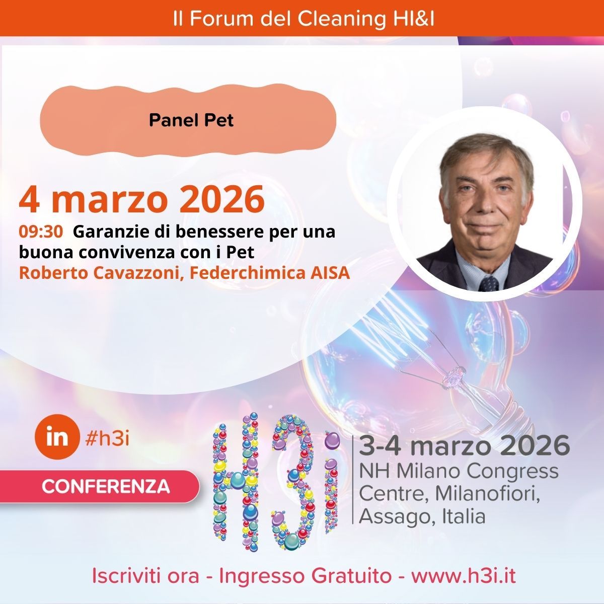 H3i – Home, Hygiene & Health Innovation è un evento dedicato al settore della detergenza e dell’igiene professionale; riunisce aziende, esperti e operatori del comparto per presentare innovazioni, prodotti e soluzioni per la pulizia domestica e industriale, favorendo confronto e networking tra i professionisti del settore. Per il secondo anno consecutivo, Federchimica AISA interverrà nel panel dedicato al Pet care.